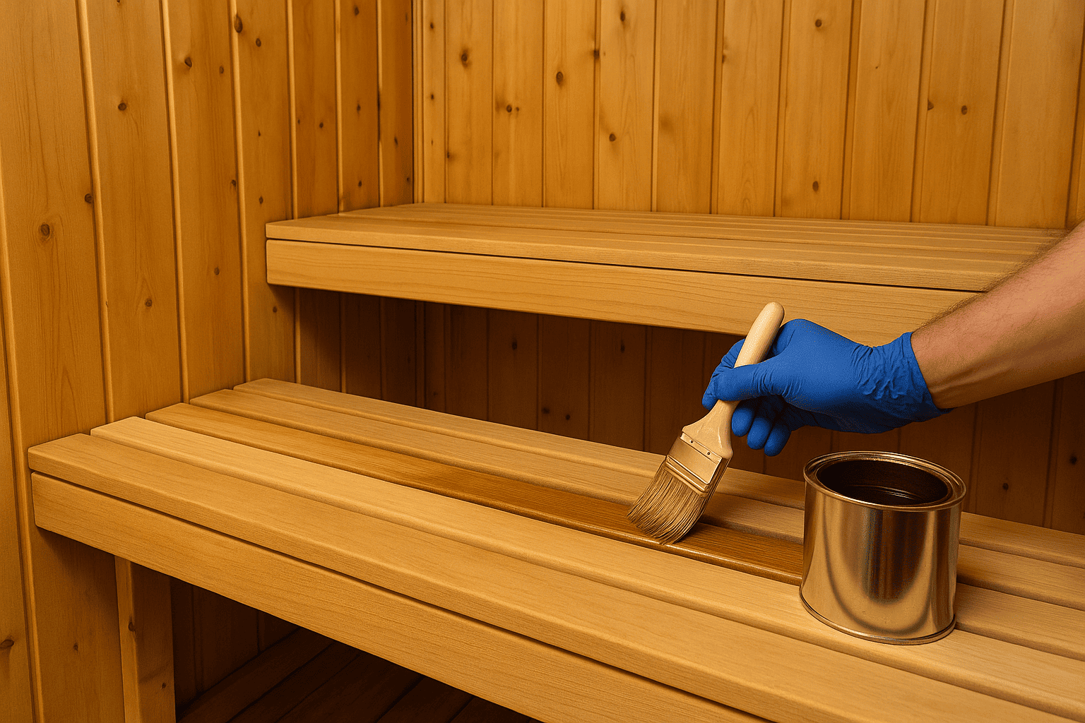 После такой обработки полки останутся светлыми, чистыми и безопасными для кожи, а баня сохранит приятный аромат древесины на долгие годы.